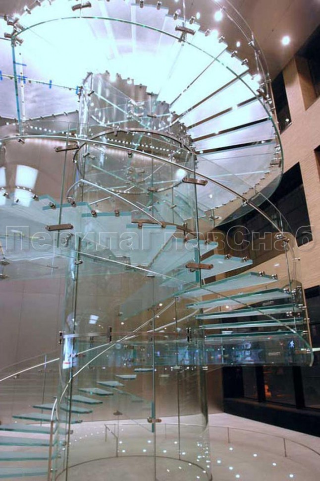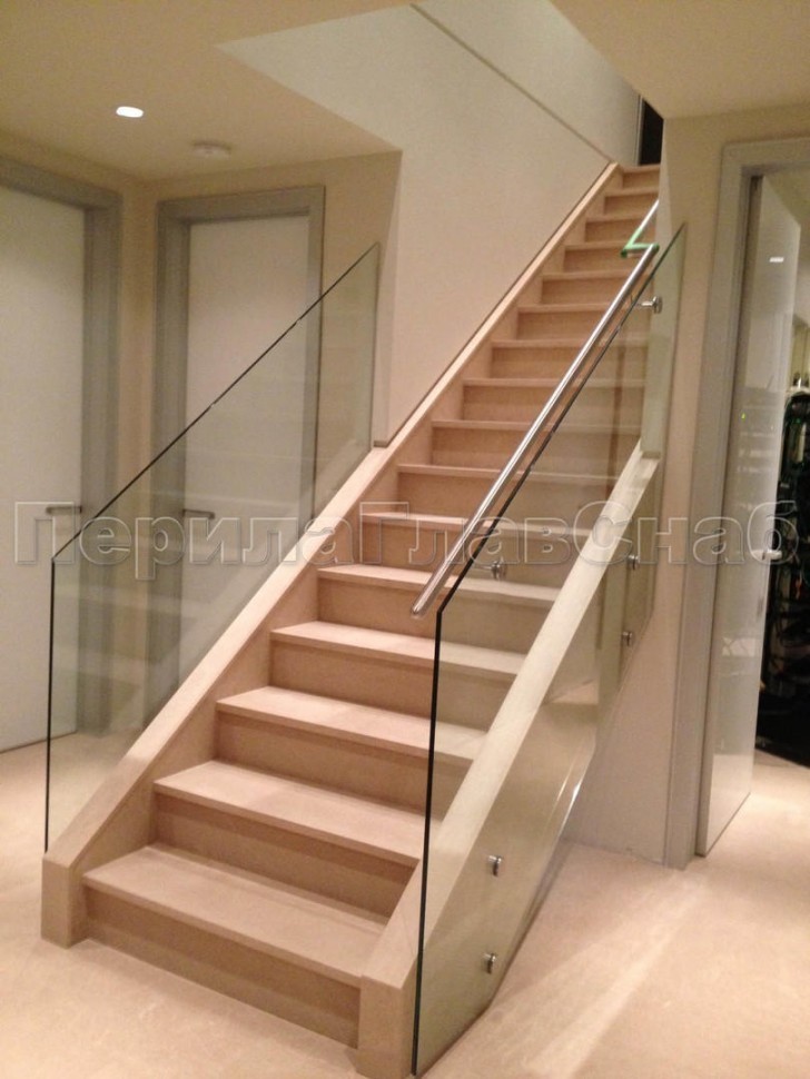 Ограждение с поручнем на выносе на точечном креплении на лестнице