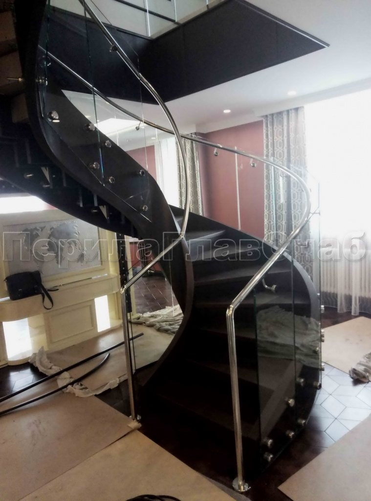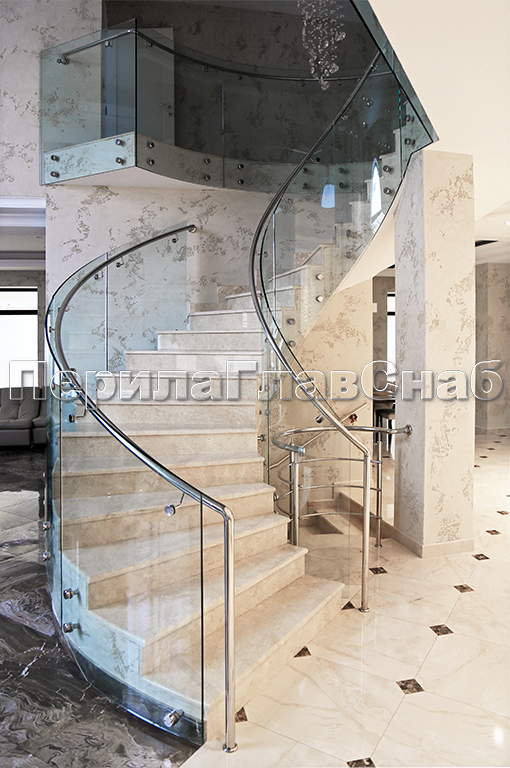 Стеклянные ограждения винтовой лестницы и баллюстрады в Красноярске. Готовые проекты ПерилаГлавСнаб