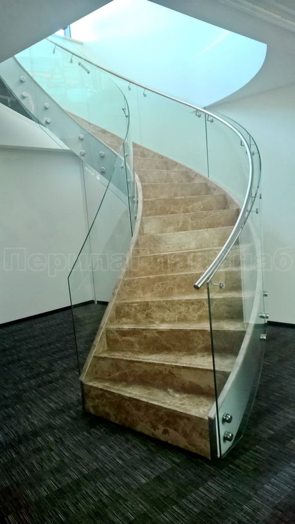 Стеклянные ограждения винтовой лестницы и баллюстрады в Красноярске. Готовые проекты ПерилаГлавСнаб - фото 1
