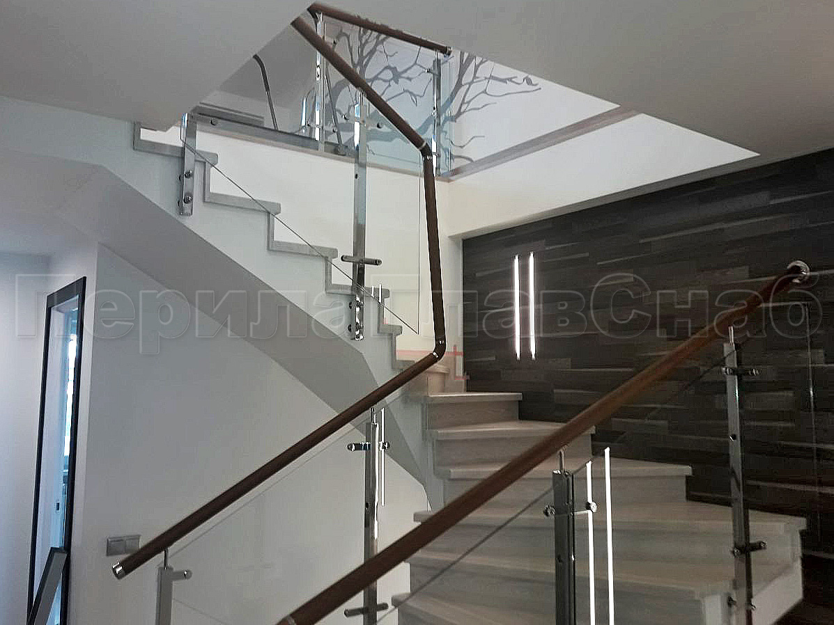 Ограждение лестницы с квадратными стойками и пластинчатыми стеклодержателями в Красноярске. Готовые проекты ПерилаГлавСнаб - фото 1 Ограждение лестницы с квадратными стойками и пластинчатыми стеклодержателями в Красноярске. Готовые проекты ПерилаГлавСнаб - фото 2
