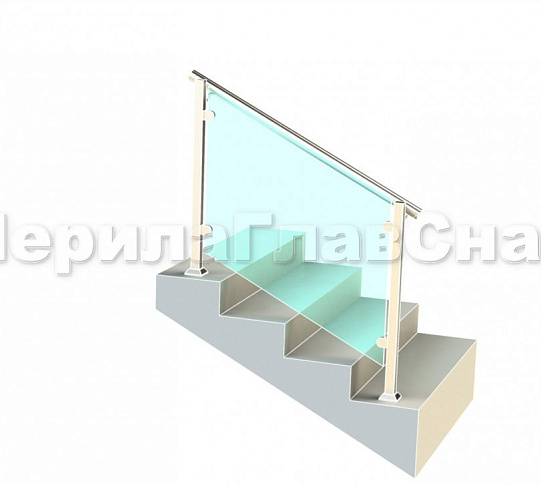 Ограждение лестницы с квадратными стойками и пластинчатыми стеклодержателями