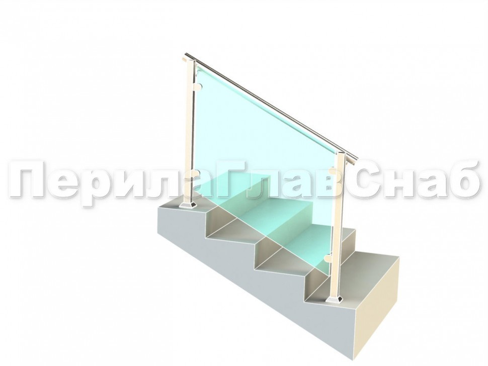 Ограждение лестницы с квадратными стойками и пластинчатыми стеклодержателями