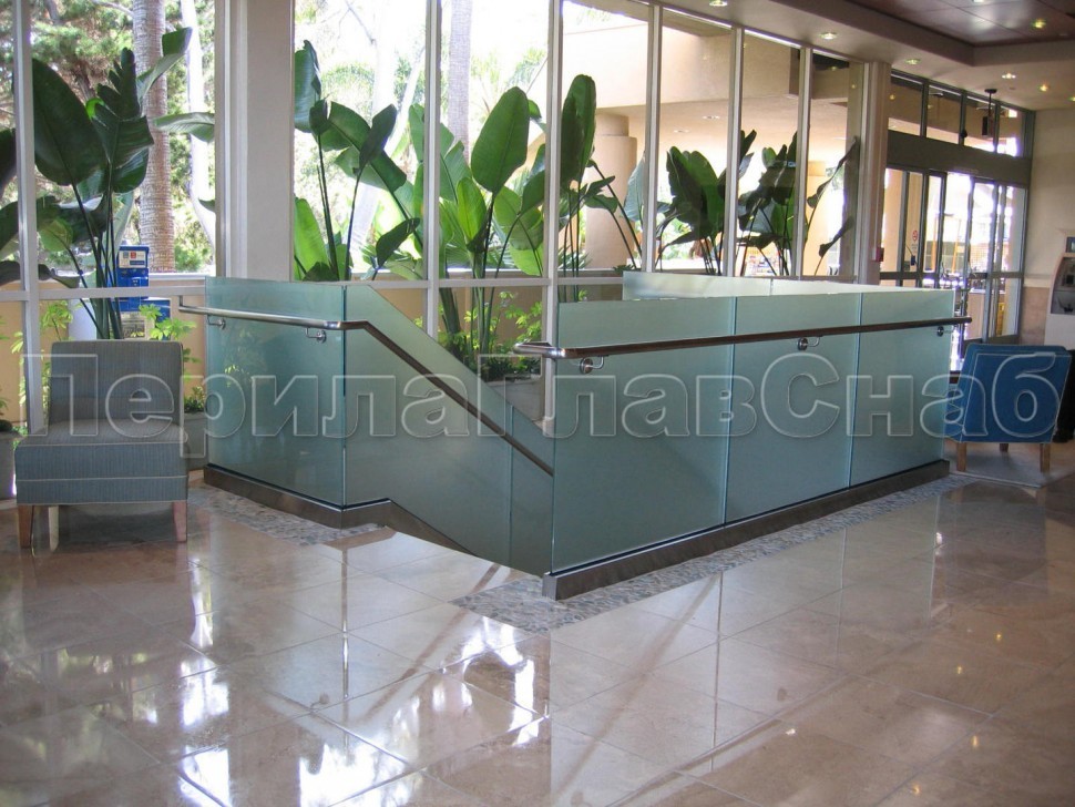 Ограждение с поручнем на выносе на точечном креплении на лестнице