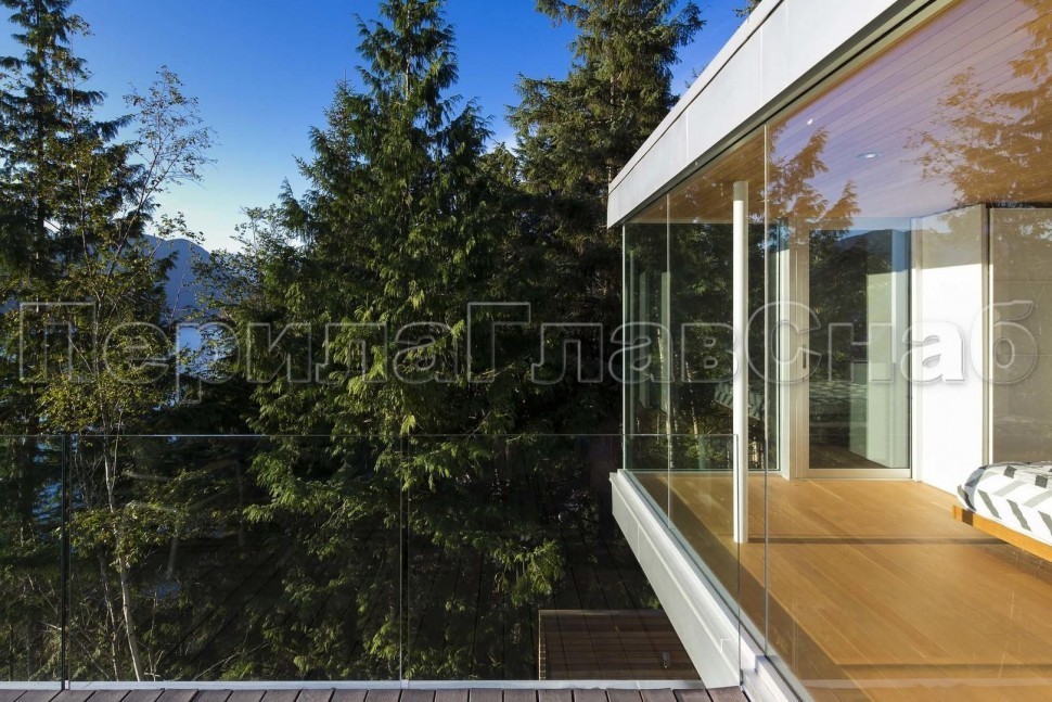 Ограждение на несущем стекле с торцевым креплением для крыш