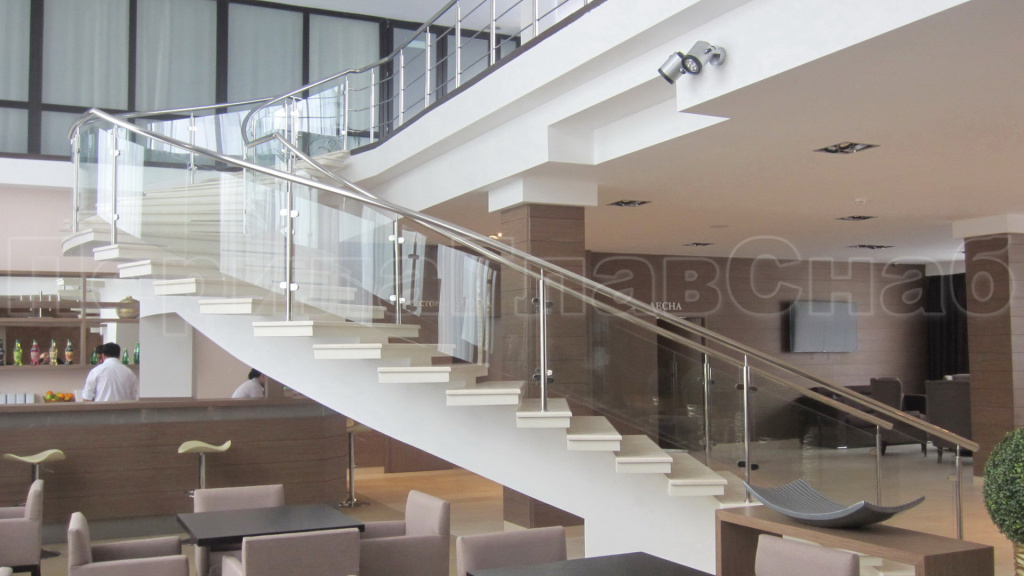 Стеклянные ограждения винтовой лестницы и баллюстрады в Красноярске. Готовые проекты ПерилаГлавСнаб