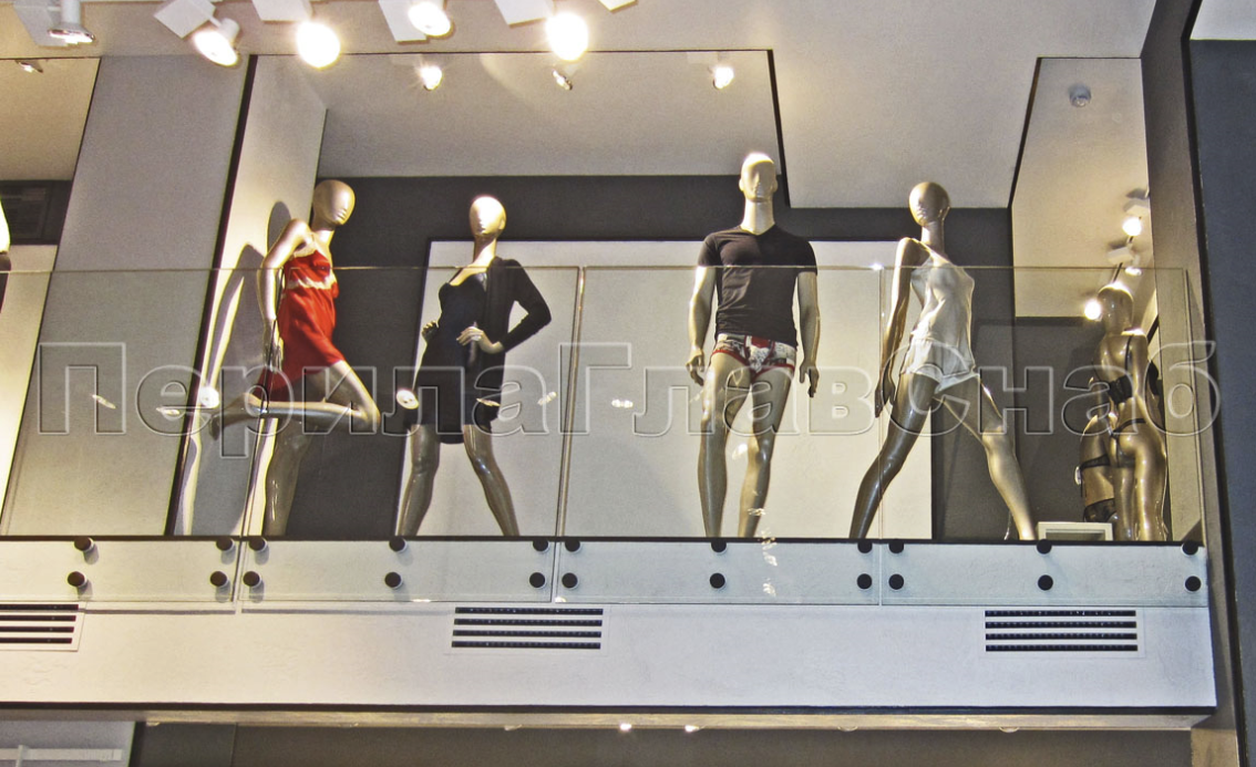 Стеклянные перила для атриума в 2-х этажном магазине.