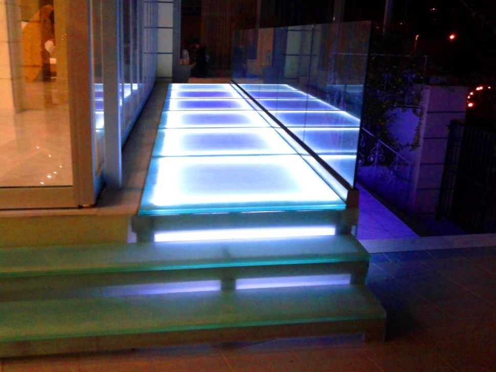 Пол из стекла, подсветка - светодиоды