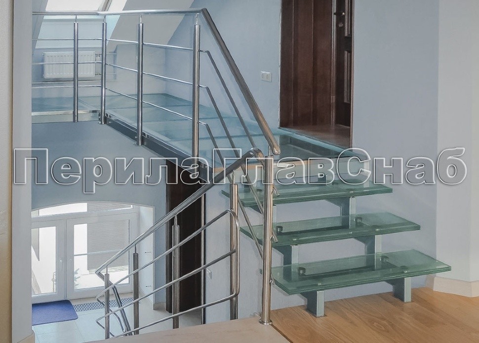 Стеклянные ступени и стеклянная площадка на лестнице в Красноярске. Готовые проекты ПерилаГлавСнаб - фото 1