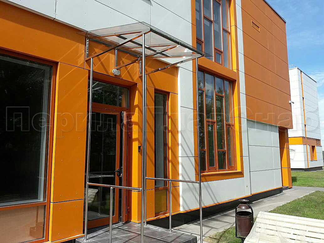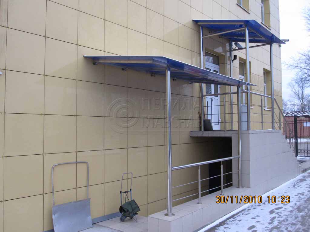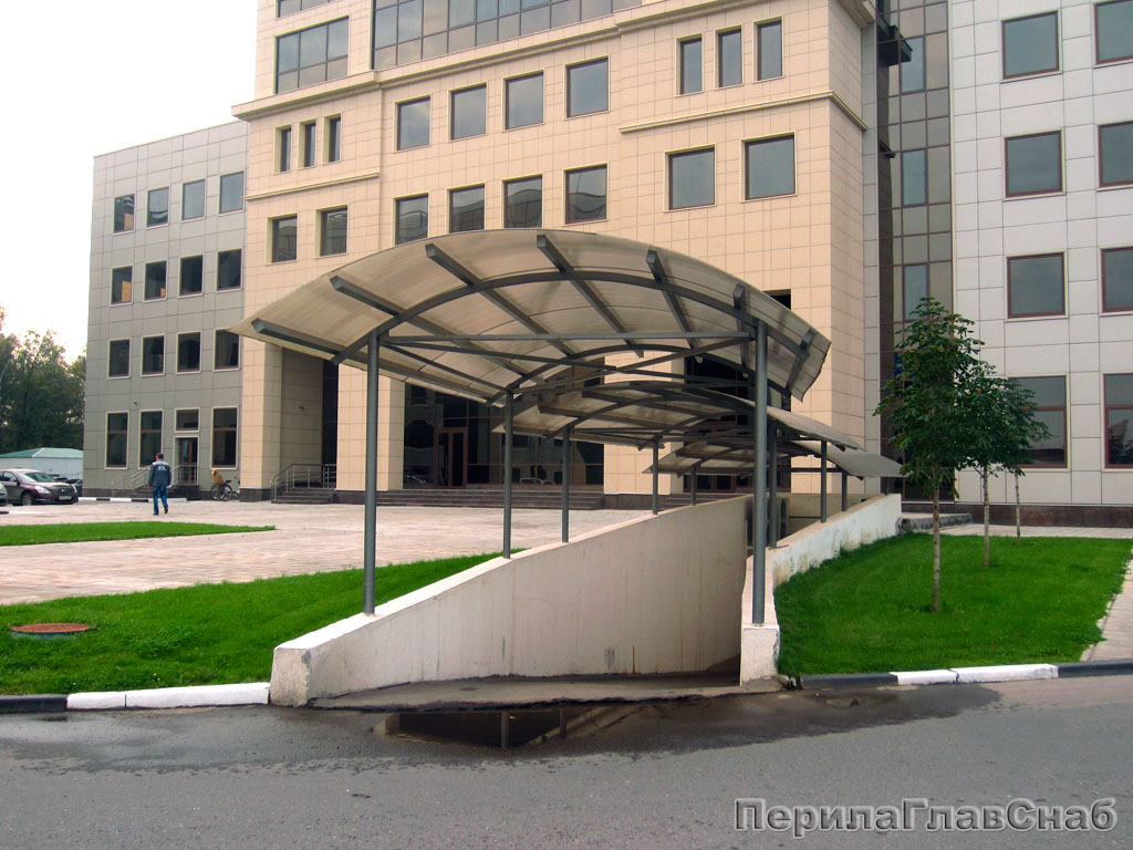 Козырек на каркасе из поликарбоната в Красноярске. Готовые проекты ПерилаГлавСнаб