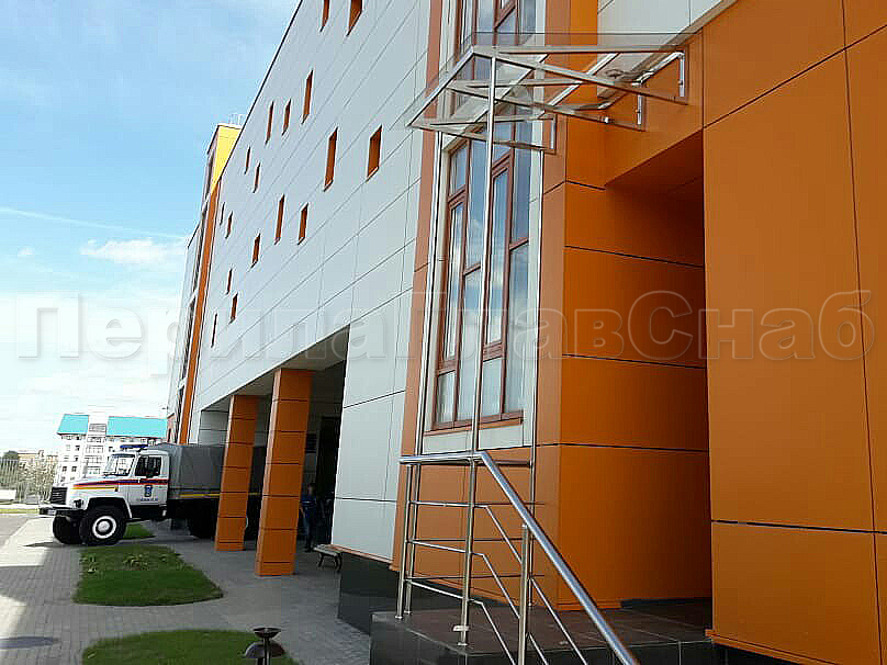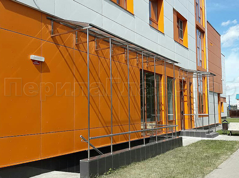 Стеклянный козырек на прямом каркасе в Красноярске. Готовые проекты ПерилаГлавСнаб