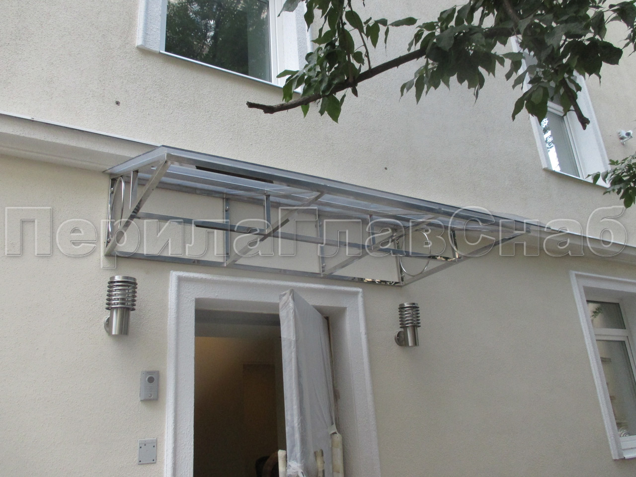 Козырек из поликарбоната на прямом каркасе в Красноярске. Готовые проекты ПерилаГлавСнаб - фото 1 Козырек из поликарбоната на прямом каркасе в Красноярске. Готовые проекты ПерилаГлавСнаб - фото 2