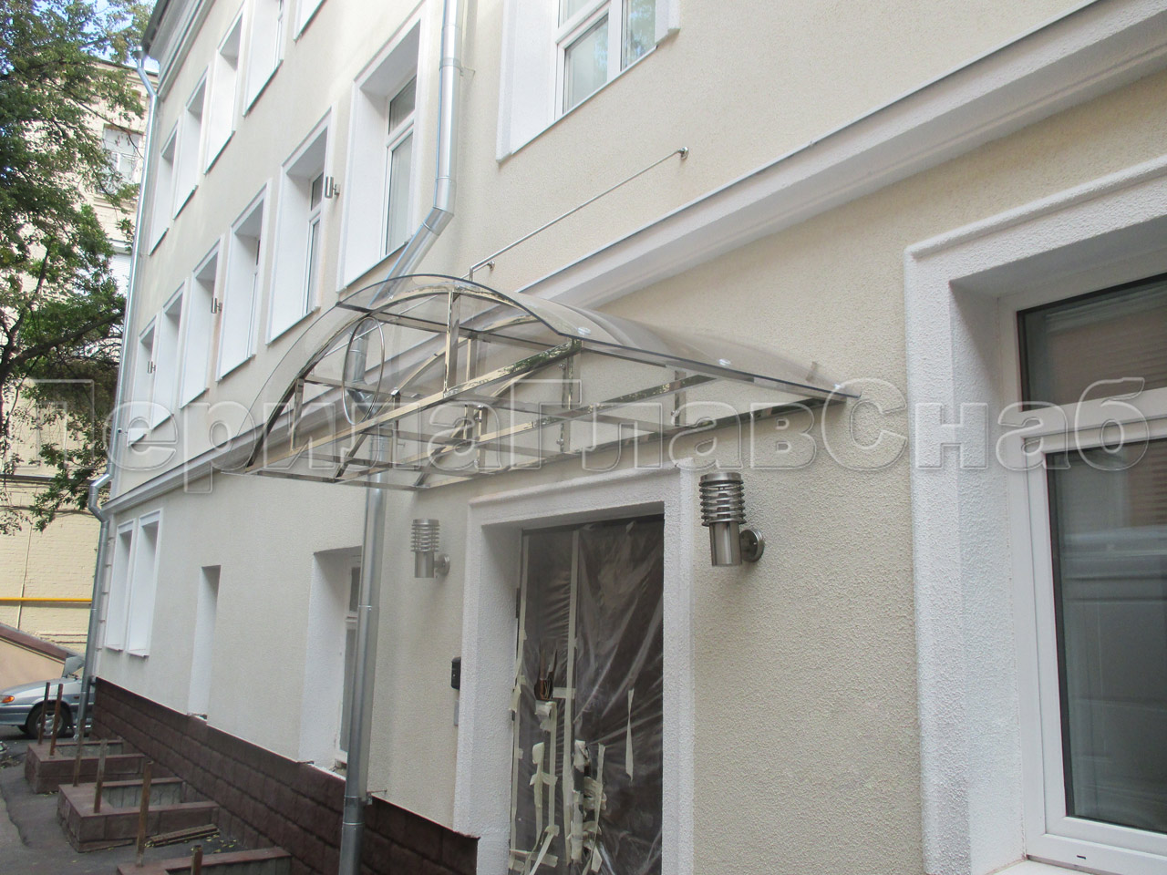 Козырек на каркасе из поликарбоната в Красноярске. Готовые проекты ПерилаГлавСнаб - фото 1 Козырек на каркасе из поликарбоната в Красноярске. Готовые проекты ПерилаГлавСнаб - фото 2