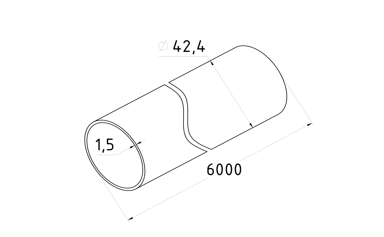 Труба Ø42.4 х 1.5 х 6м, тройная полировка 600GRIT, (AISI 304), уценка Фk845-У